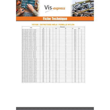 Entretoise Hexagonal Mâle femelle M4X20 Clé de 7 HC7 MALE 8MM Nylon