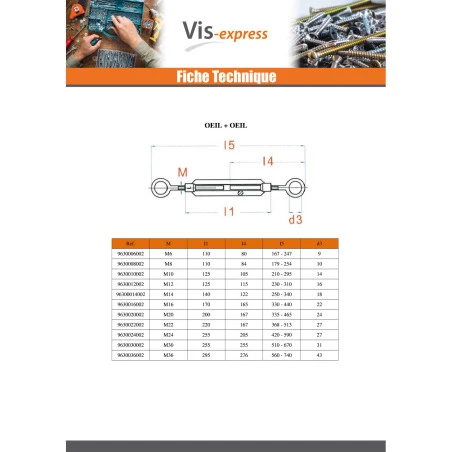 Tendeur Crochet Oeil 10X125 Oeil 14 Acier zingué
