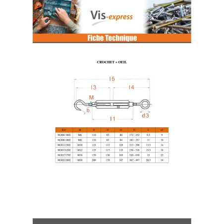 Tendeur Crochet Oeil 6X110 Oeil 9 Acier zingué